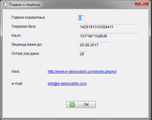 - серијски број инсталације (генерише се аутоматски приликом инсталације);